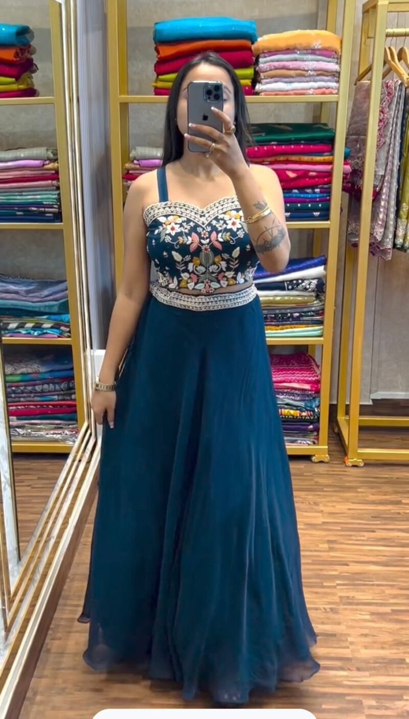 *Work*: Solid Plain Lahenga with Sequins Embroidery work on Weist