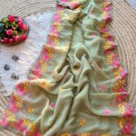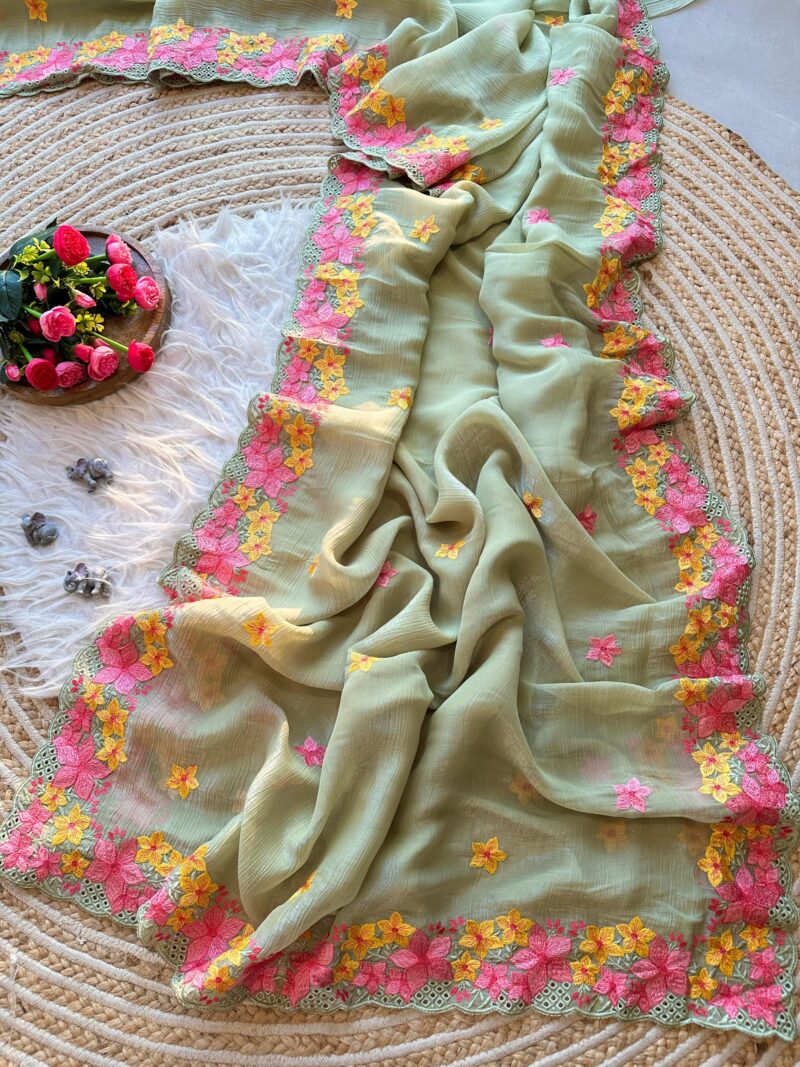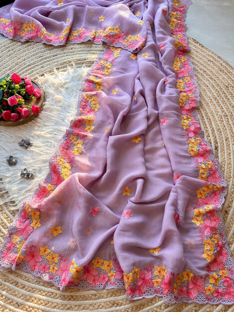 Beautiful *Georgett silk* Sarees With *Beautiful embroidery work * with beautiful Cutwork in Border