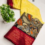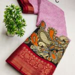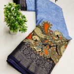 VERY EXCLUSIVE Handloom Silk called kanchi Boder Dola Silk Fabric WITH Kalamkari PRINTING SAREES WITH Zari Weaving Pattu Border Pallu & Attached Blouse