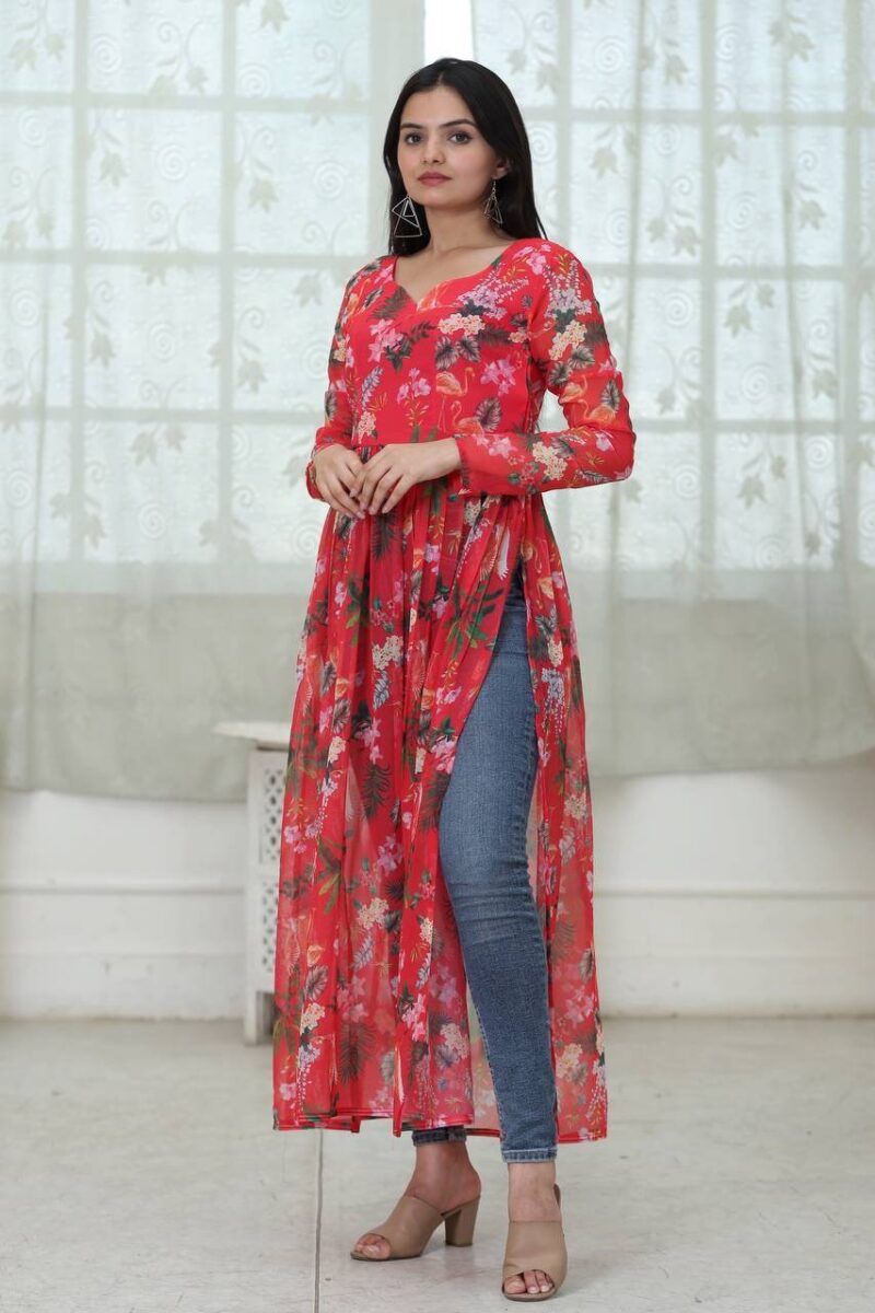 FABRIC & WORK :- Fox Georgette with Floral Degital print.