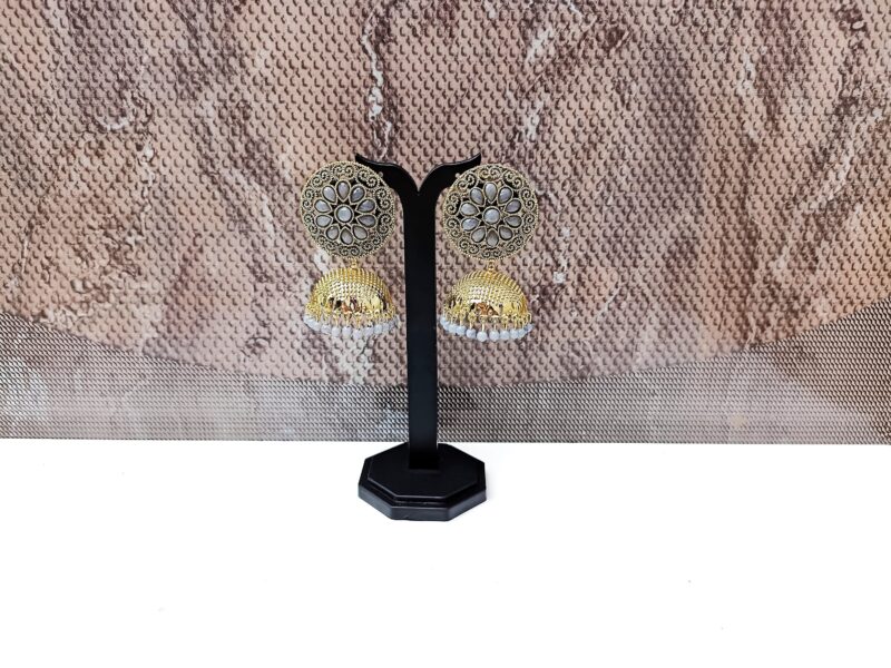 Grey Colour Stone Stutted Brass Jhumki