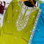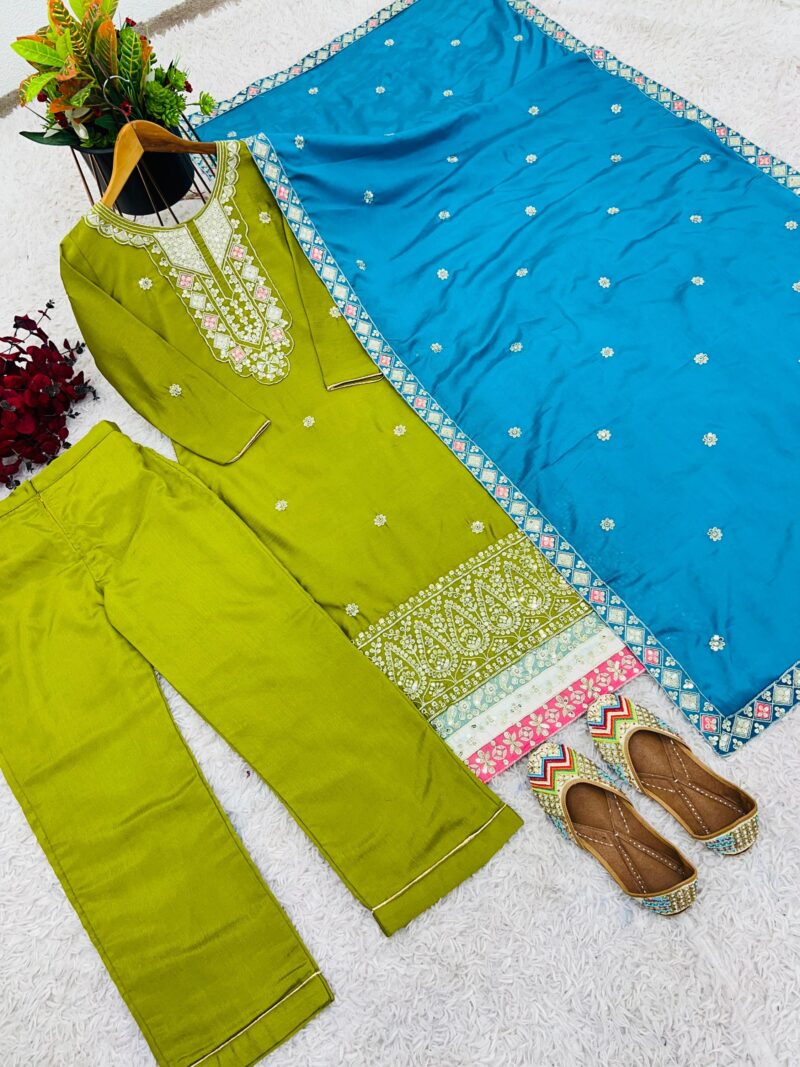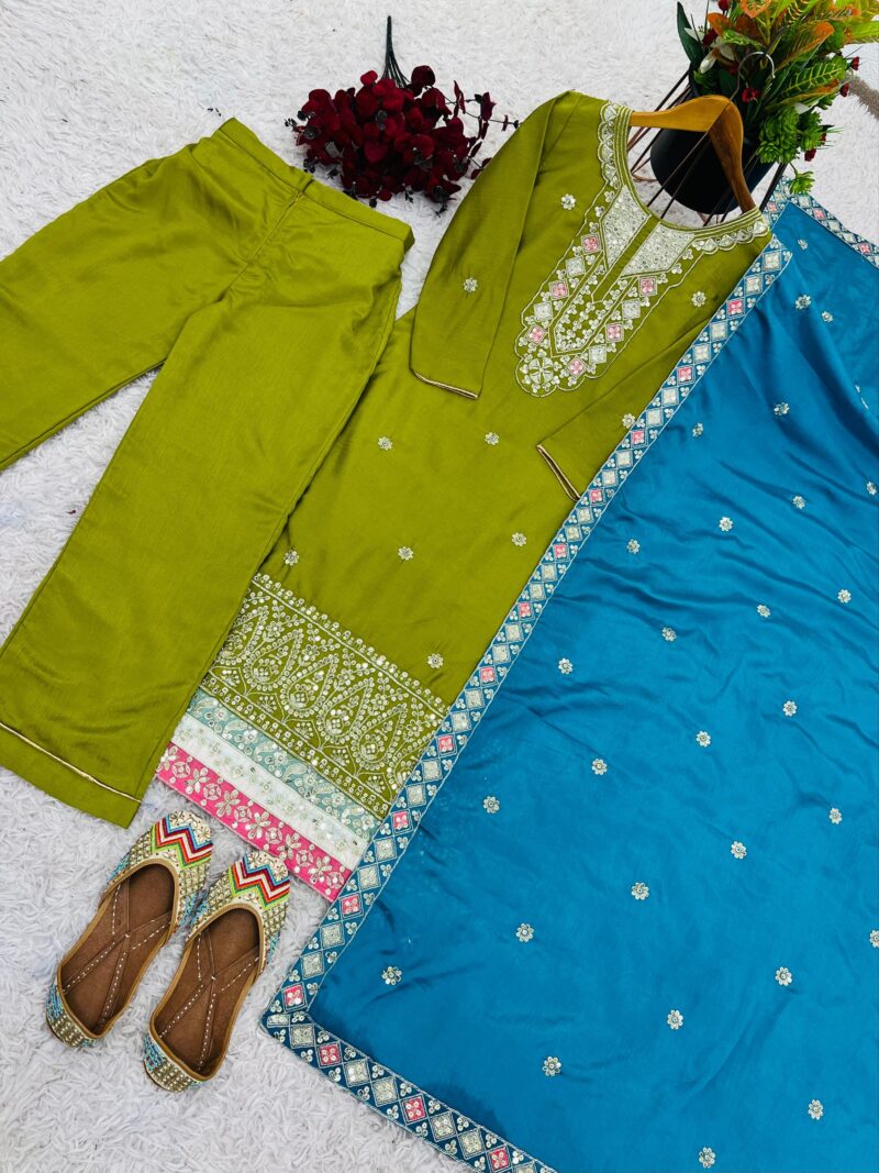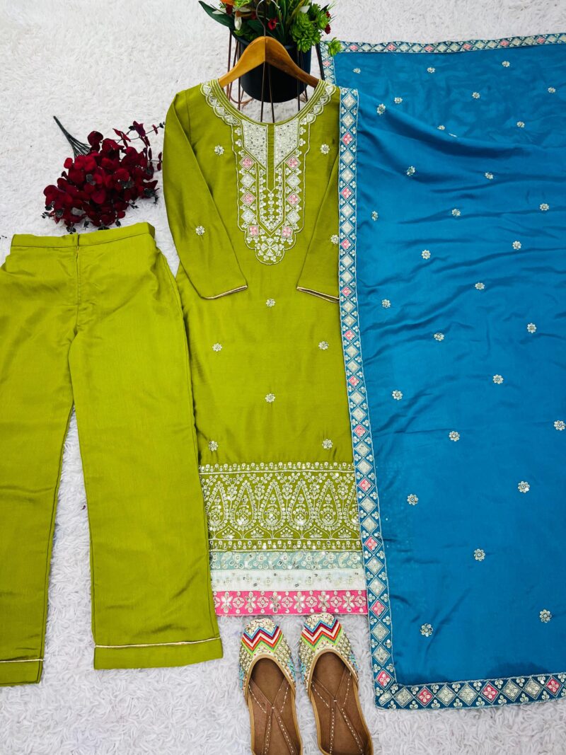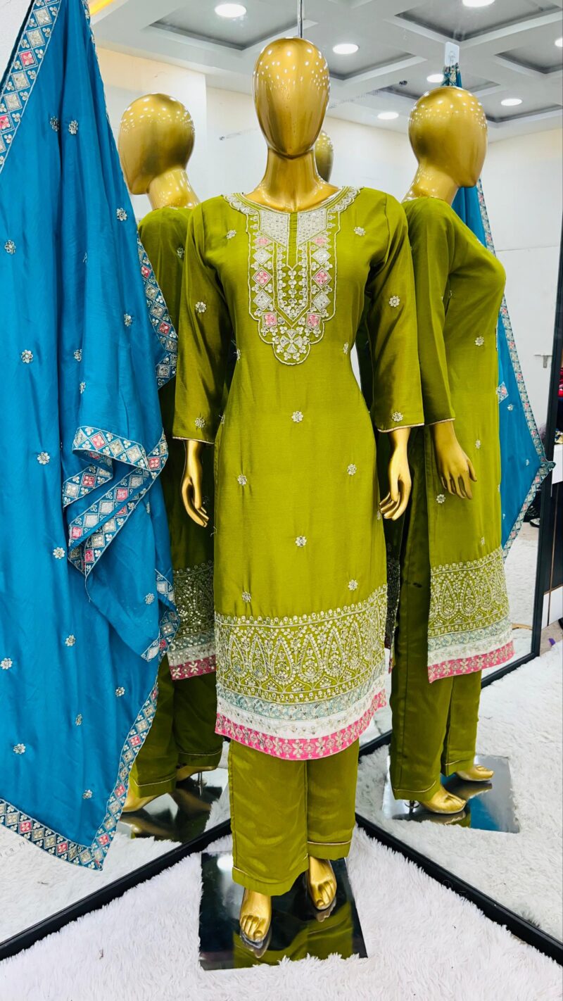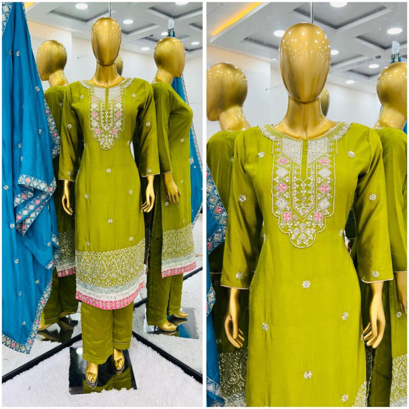 *Presenting New Festival Collection In Chinnon And Heavy Embroidery Sequence Work Top-Bottom And Dupatta Set Fully Stitched Ready To Wear *