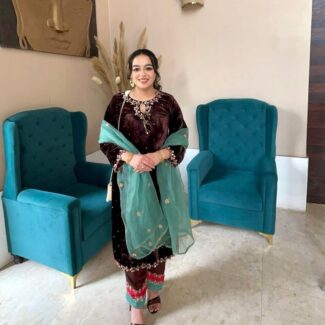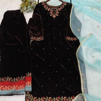 *Presenting New Premium Kundan Organza Suit With Embroidery Coding Dori-Sequence With Heavy Stone Mirror Hand Worked Top-Bottom And Dupatta Set Fully Stitched Ready To Wear