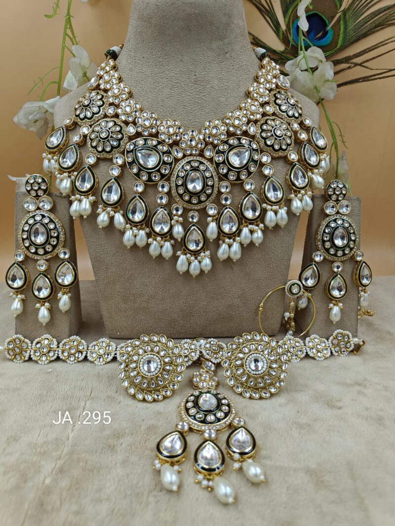 Green Colour Kundan &Beads Heavy Bridal Jewellery Set