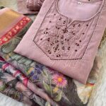*FABRIC*-Kurti Premium Roman Silk Soft Fabric With Handwork Neck , Sleeve 3/4 With Fancy Lece