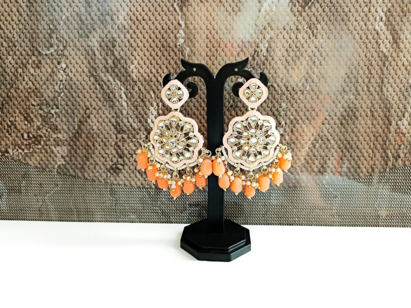 Light Orange Colour Meenakari Kundan Earrings