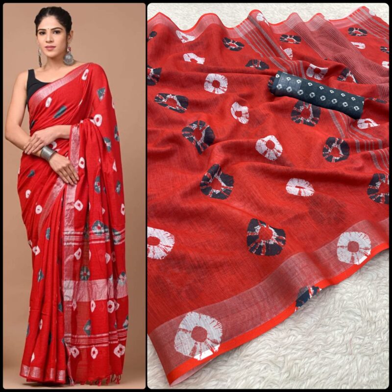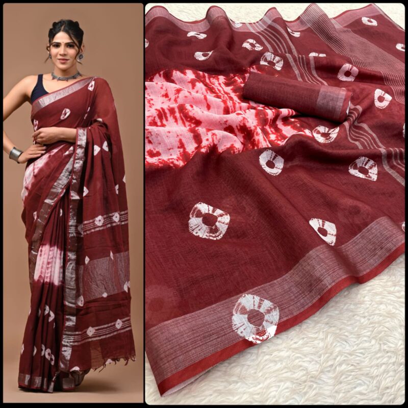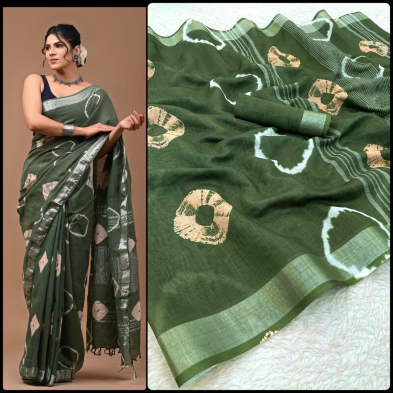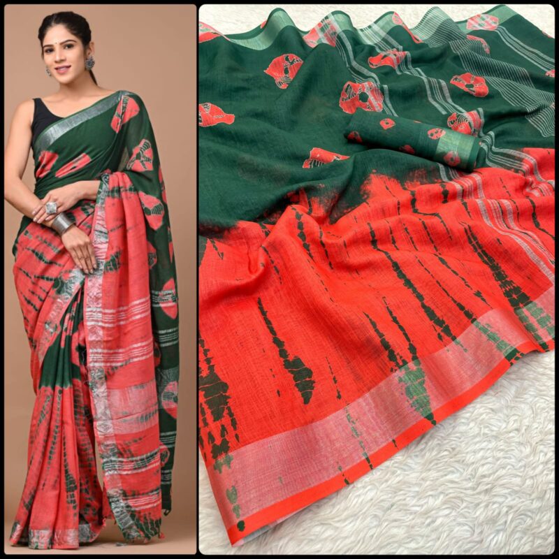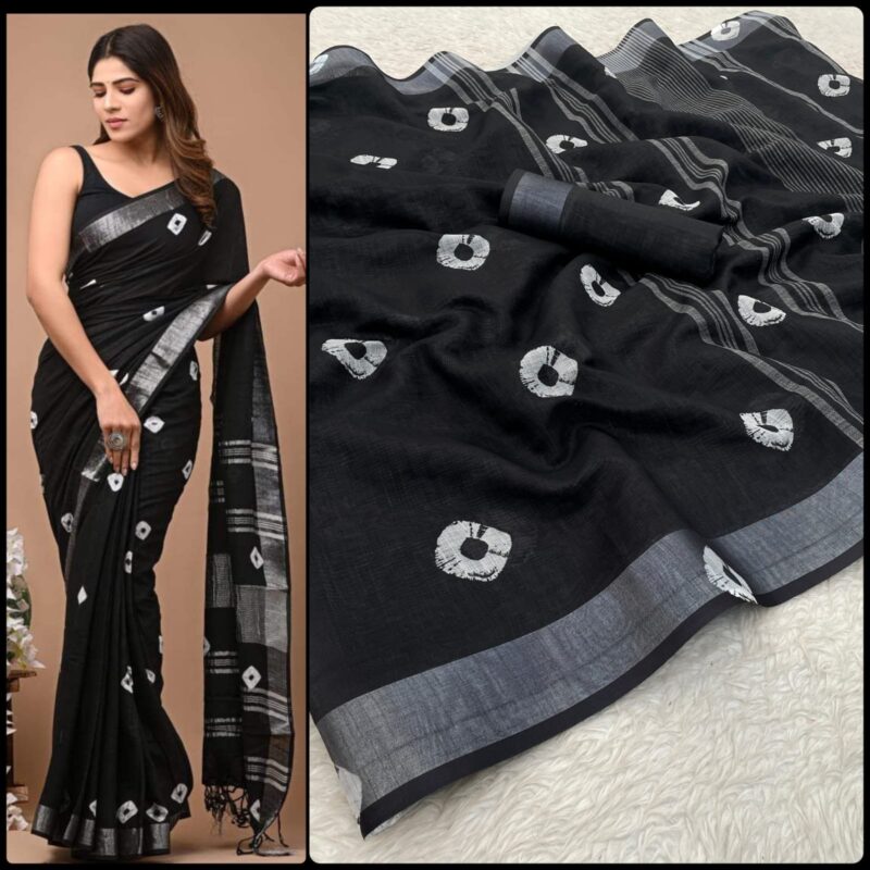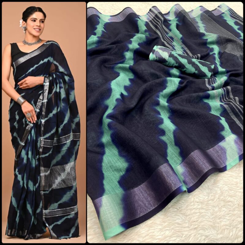 Linen Digital Print Saree With Silver