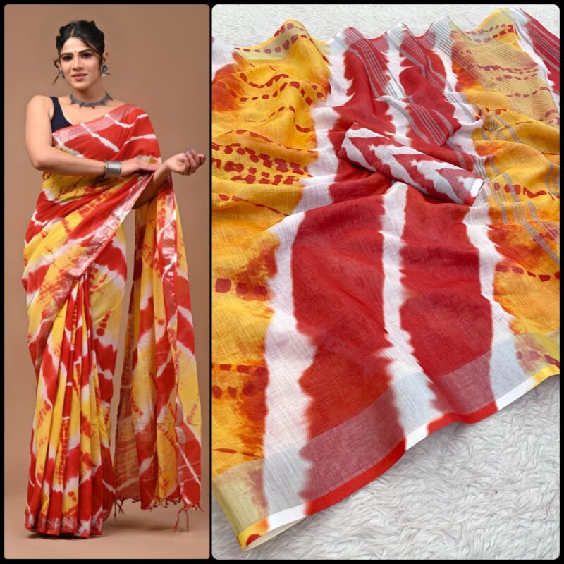 Fabric- Linen Digital Print Saree With Silver