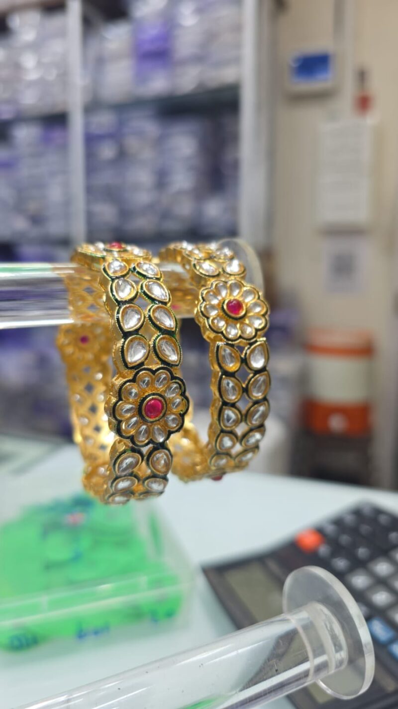 Beautiful Design: This set of 2 kundan kda feature intricate kundan and meenakari work in a traditional Indian design perfect for weddings and festivals.