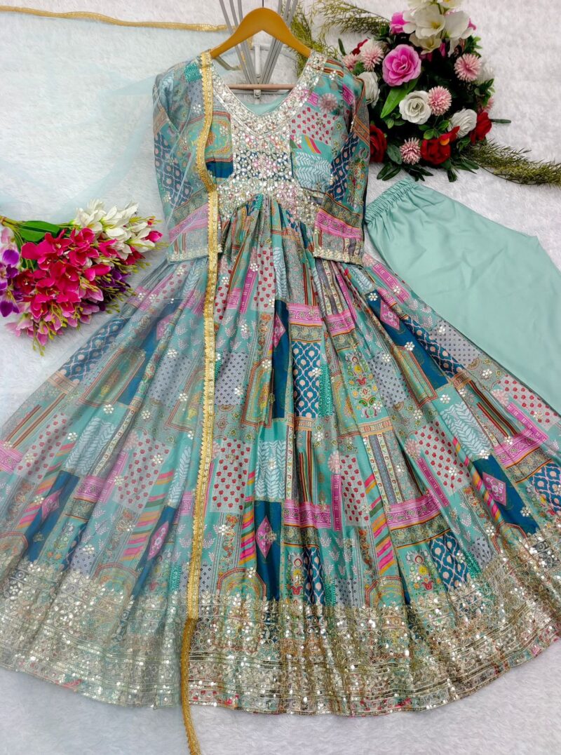 Presenting New Aliya-Cut Gown -Pent Dupatta Set Fully Stitched Ready To Wear