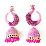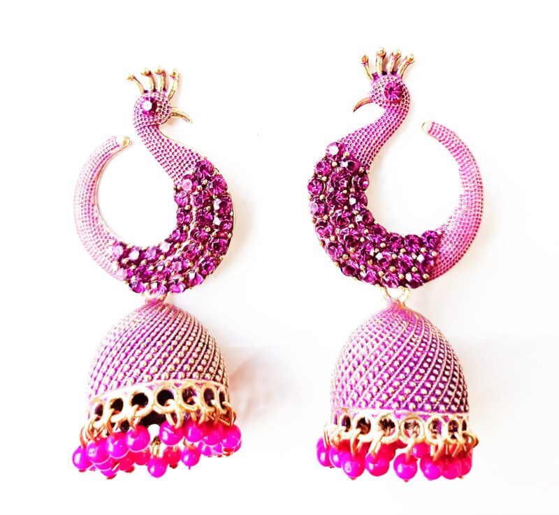 Sky Blue Colour Peacock Design Jhumki Earrings