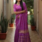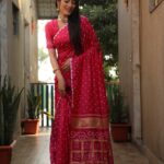 New premium and high quality , comfortable Bandhej silk drapes with Checks Pattern Pallu that is super stylish and pretty