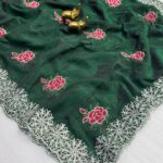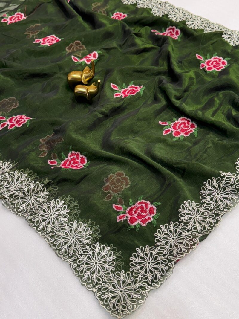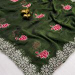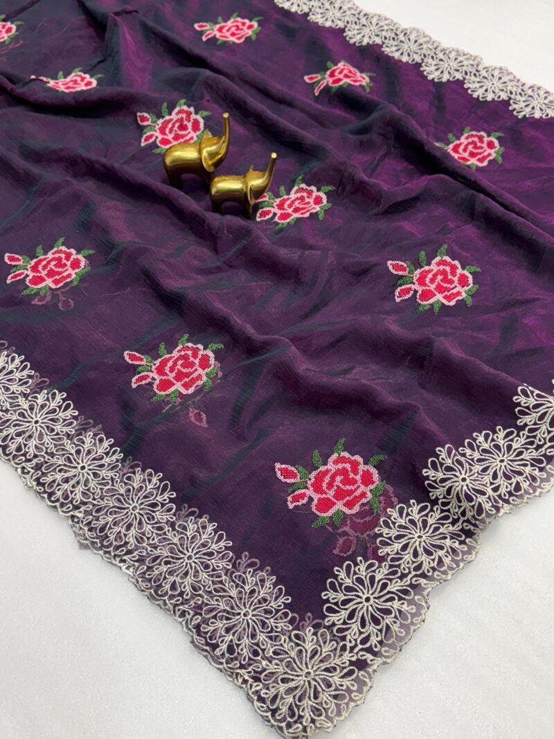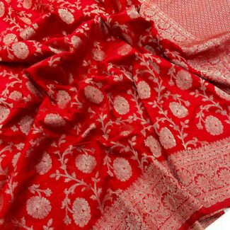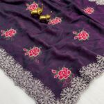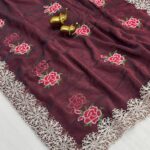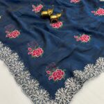 Pure silver crunch saree in a viscose thread embroidered work With beautiful flower butta work and Paired with work silver crunch blouse of same color and fabric of saree