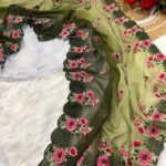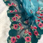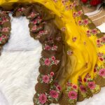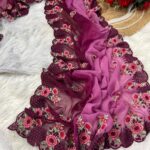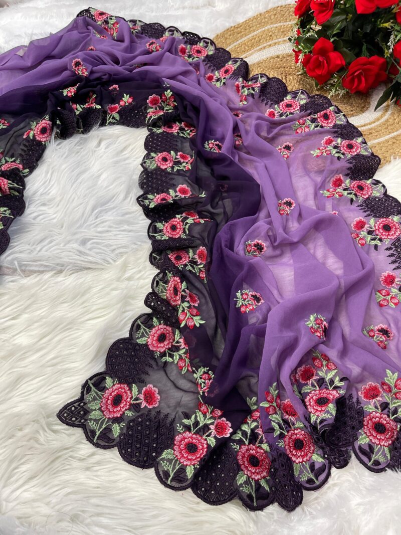 Pure soft georget silk pedding saree with embroidery thread work with cutwork nd aarco