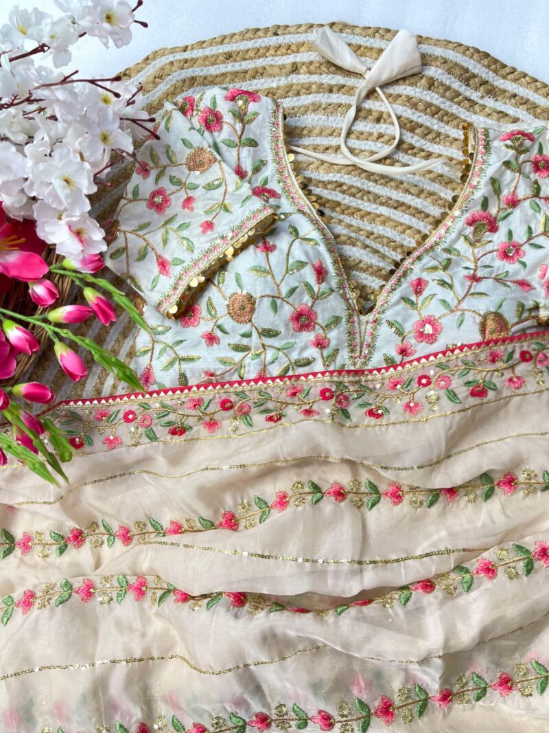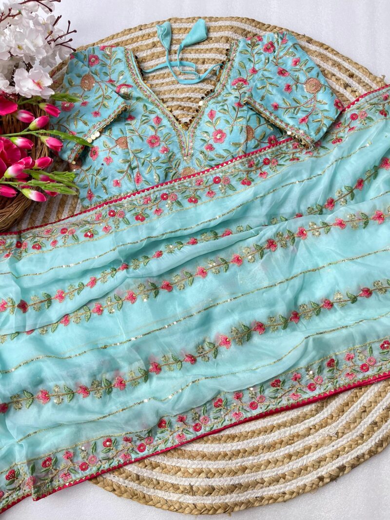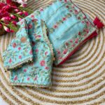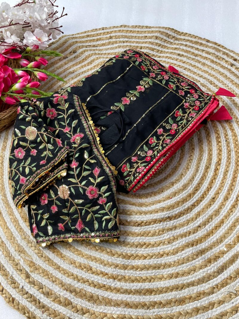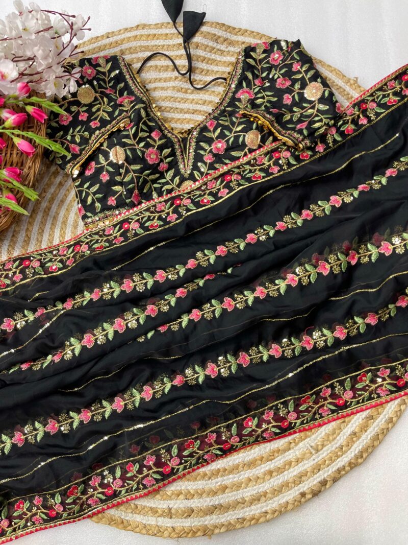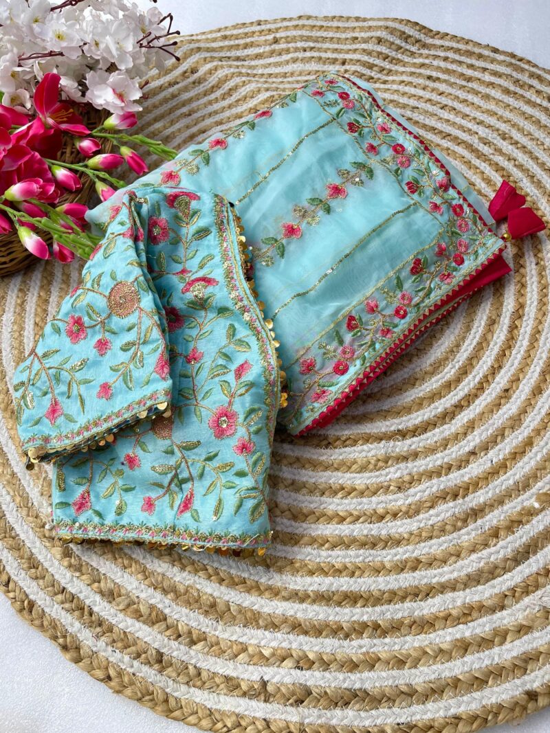*Pure soft teby silk saree with amazing embroidery thread nd 3 mm sequence work border nd piping*