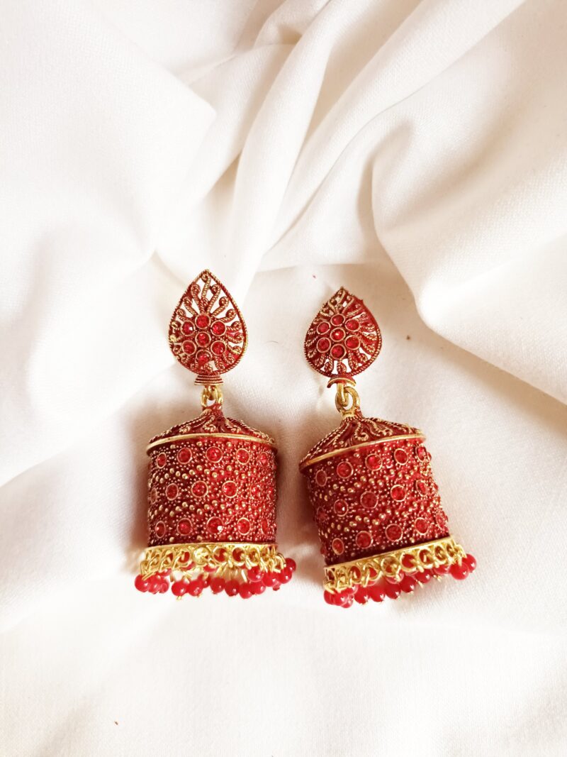 Red Colour Stone Jhumki For Women’s & Girl’s