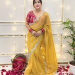 DESIGNER SANYASANCHI EMBROIDERY WORK WITH BORDER WORK GOLD TISSUE CRUSH FABRIC