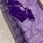 *Smooth chiffon based georgette saree with broad foil border & cut-work embroidered zari lace*