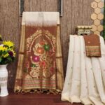 PREMIUM SOFT MUGA COTTON SAREE WITH CLASSIC COLOURFULL RESHAM WEAVING PALLU AND TRADITIONAL ZARI WEAVING BORDER AND ALL OVER RESHAM WEAVING BUTTIES AND FANCY TASSELS WITH CONTRAST BLOUSE PIECE