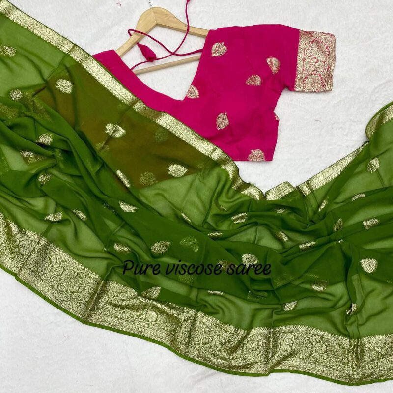 Beautiful Elephant Viscose Georgette Saree With Beautiful Small Jacquard Butti All Over in Saree